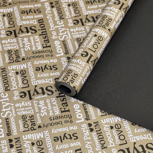 Крафт бумага "Love story"двухсторонняя черный/белый на коричневом фоне 70см/60гр/60мкр/10м± 5%