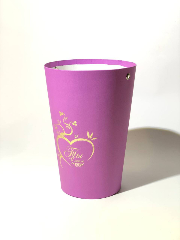 Конус под цветы 10*14*20 с тиснением "Ты в моём сердце" светлая фуксия