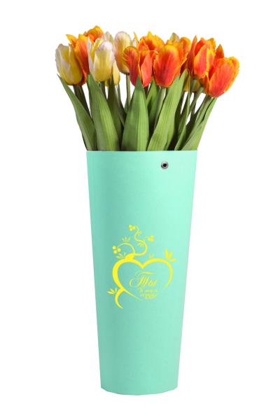 Конус под цветы 10*14*30 с тиснением "Ты в моём сердце" морская волна