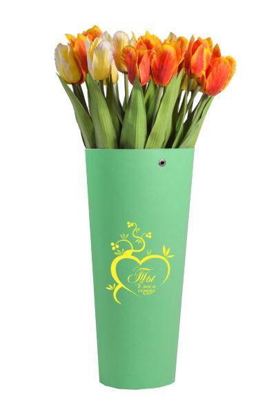 Конус под цветы 10*14*30 с тиснением "Ты в моём сердце" зелёный