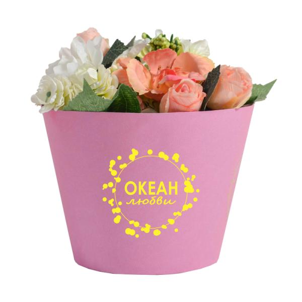 Конус под цветы 13,5*20*14 с тиснением "Океан любви" малиновый