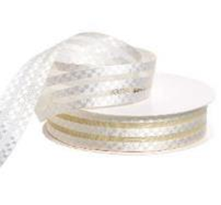 Лента органза с атласными вставками, 2,5cmx18yards, цв.кремовый