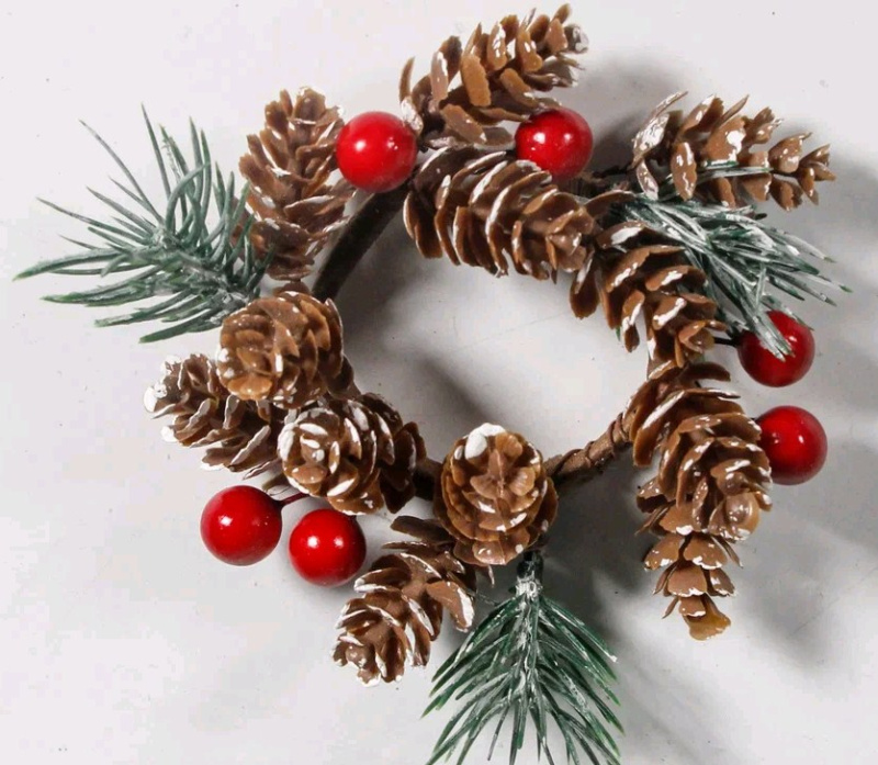 Венок декоративный с шишками и ягодами 14 см