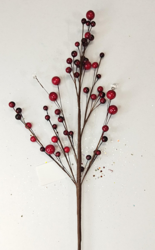 Ветка декоративная с бусинами 60 см красный