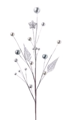 Ветка декоративная с бусинами и листиками и звездочками 40 см золото