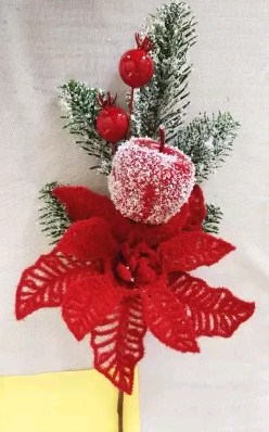 Ветка с красным цветком и заснеженным яблоком и ягодами 32 см