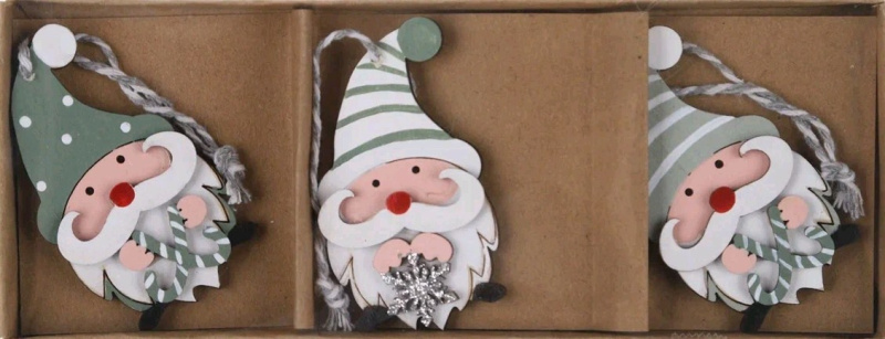 Набор декоративных подвесок Санты 7,5 см 3шт зеленый
