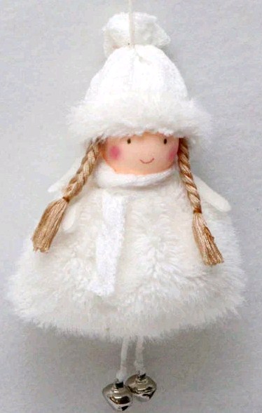 Новогоднее декоративное изделие Девочка на подвеске 1 шт 17 см белый