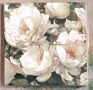 Карточка "С Днем Рождения (белые пионы)" K381