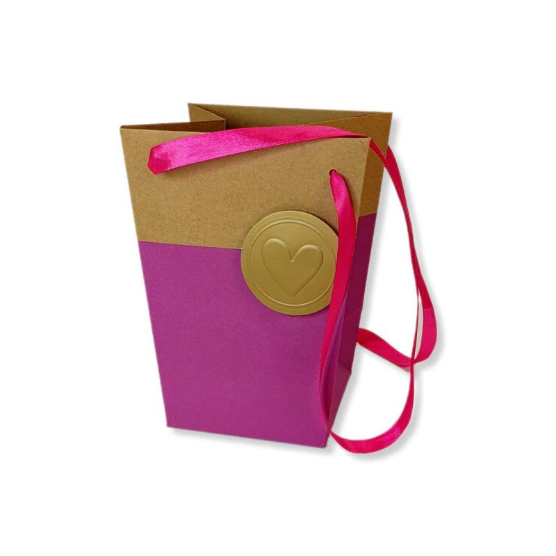 Пакет подарочный "Мастхэв" с ручками лентами , 15х11х20 см, крафт с сиреневым