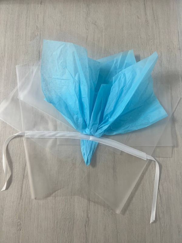 Быстросборная упаковка Форма №1. Цвет пленки: мат. прозрачный с голубой.тиш.; размер букета: в40,ш35