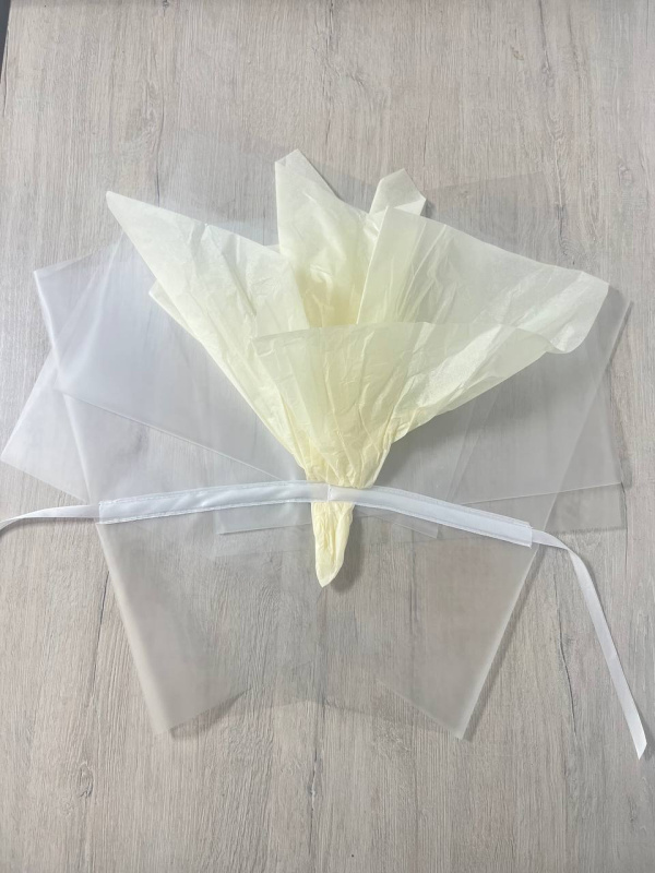 Быстросборная упаковка Форма №1. Цвет пленки: мат. прозрачный с крем.тиш.; размер букета: в40,ш35