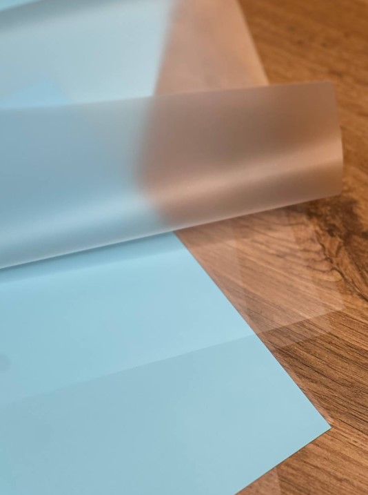 Быстросборная упаковка Форма №3. Цвет: матовая чередуется с голубой пленкой, размер букета:в50,ш30