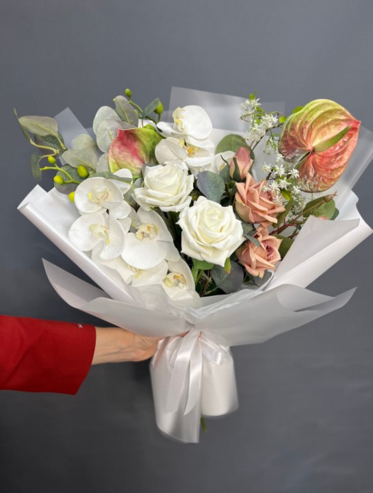 Быстросборная упаковка Форма №4. Цвет: матовая чередуется с белой пленкой, размер букета; в55,ш50