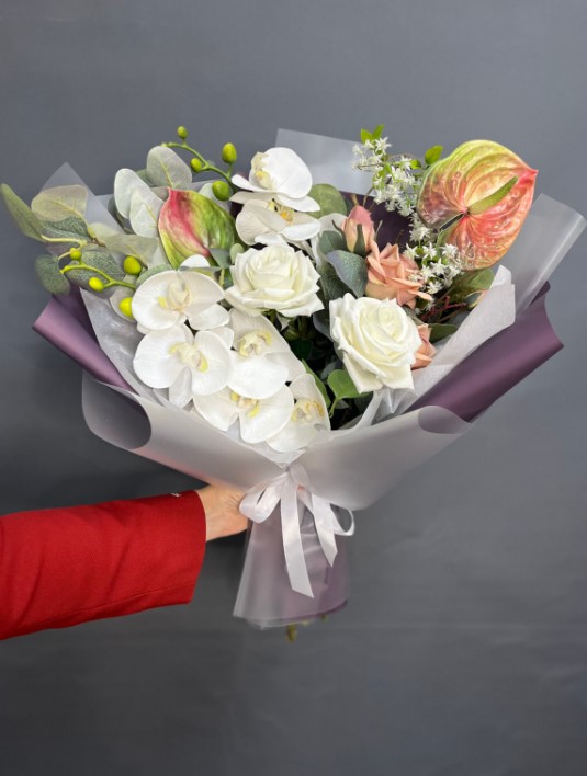 Быстросборная упаковка Форма №4. Цвет: матовая чередуется с чернич пленкой, размер букета; в55,ш50