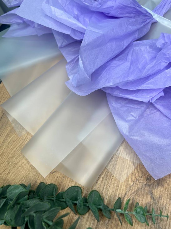 Быстросборная упаковка Форма №5. Цвет: матовая пленка с сирен тишью,размер букета:в50,ш40