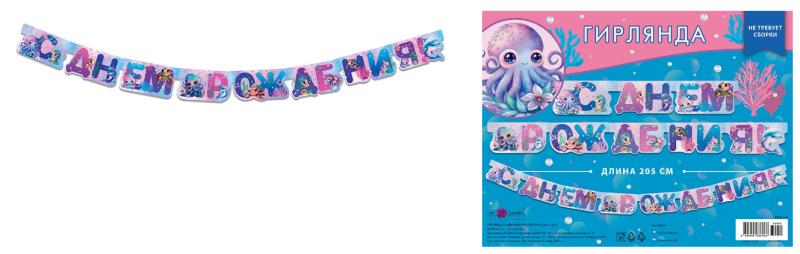 Гирлянда праздничная на люверсах "С Днем Рождения" 205см 0565.103
